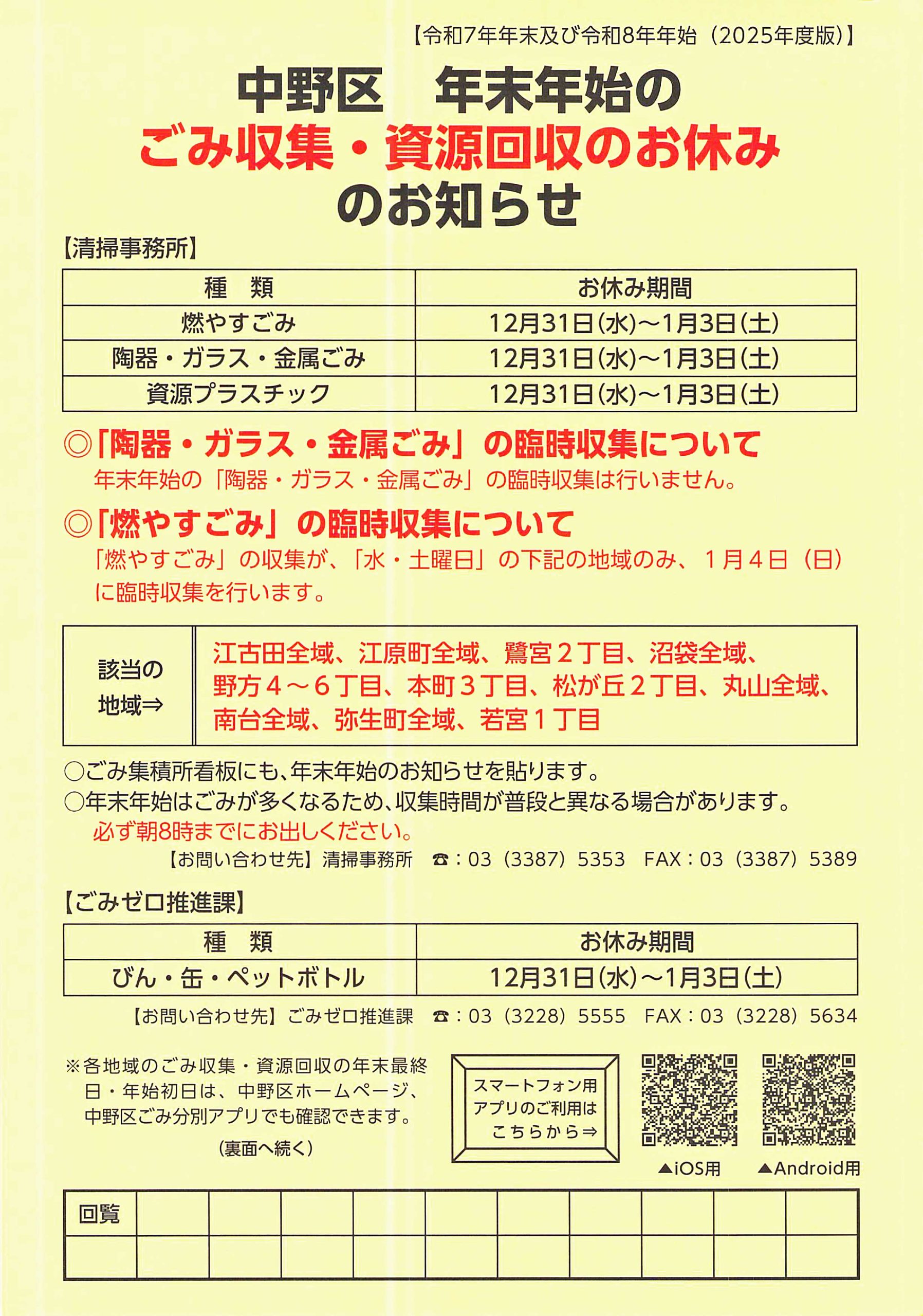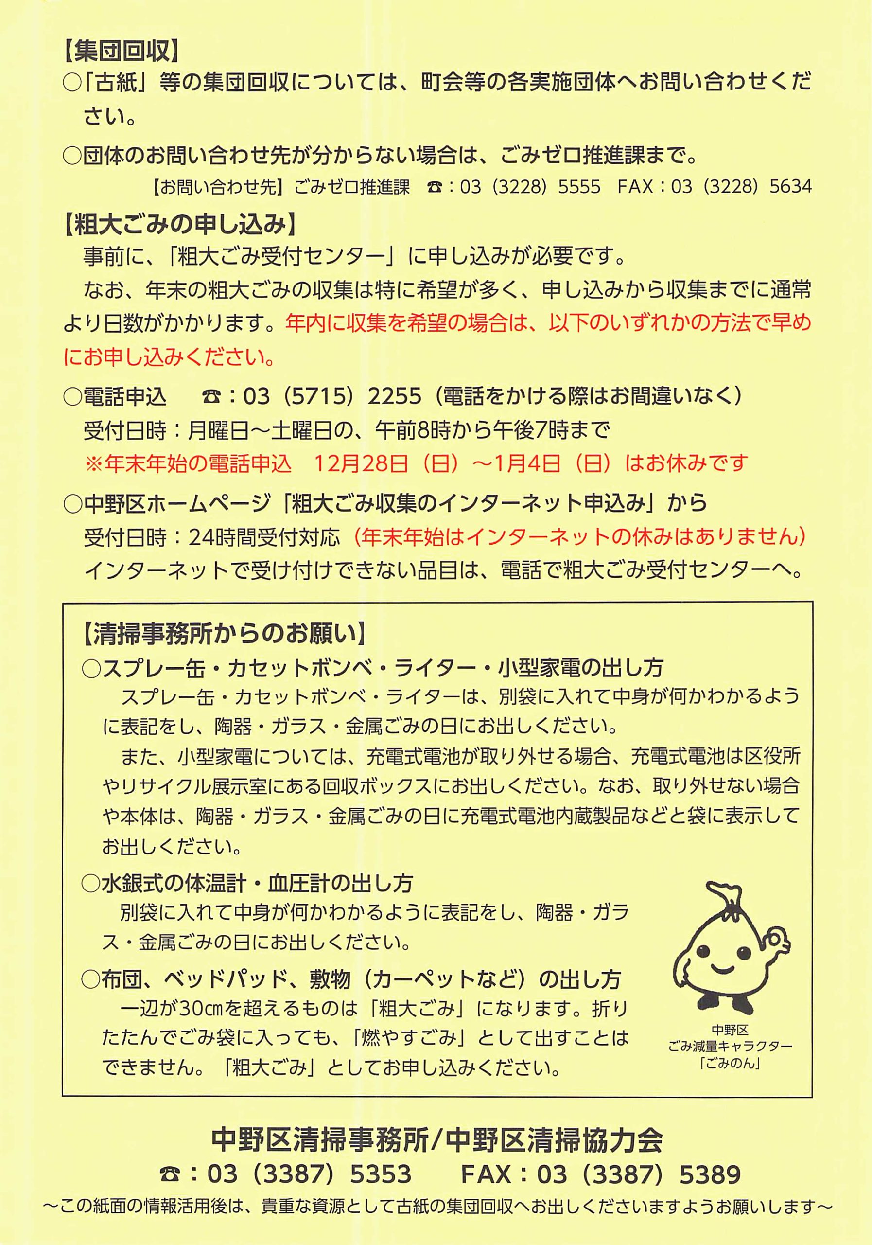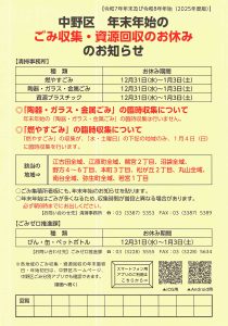 年末年始のごみ収集・資源回収のお休みのお知らせ